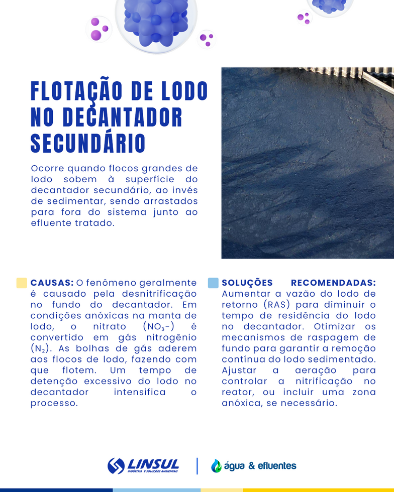 Cada problema é descrito tecnicamente, com suas causas mais comuns e as soluções recomendadas para controle e mitigação. O objetivo é fornecer um guia prático e direto para o diagnóstico e correção dessas falhas, que afetam diretamente a eficiência do tratamento e a qualidade do efluente final.