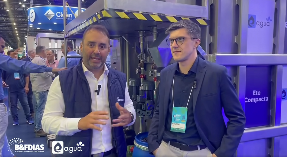 Durante a FENASAN, o Matheus Renato Gomes explicou como funciona essa solução inovadora — fruto da parceria entre a E-Agua e a B&F DIAS.